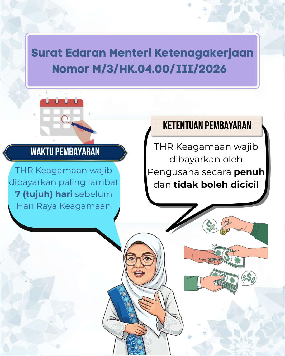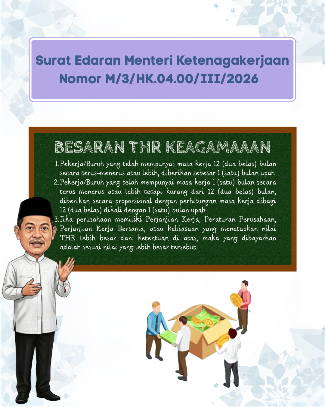 Mari bersama wujudkan iklim hubungan industrial yang harmonis dan kondusif melalui pemenuhan hak THR Keagamaan sesuai dengan ketentuan perundang-undangan yang berlaku.